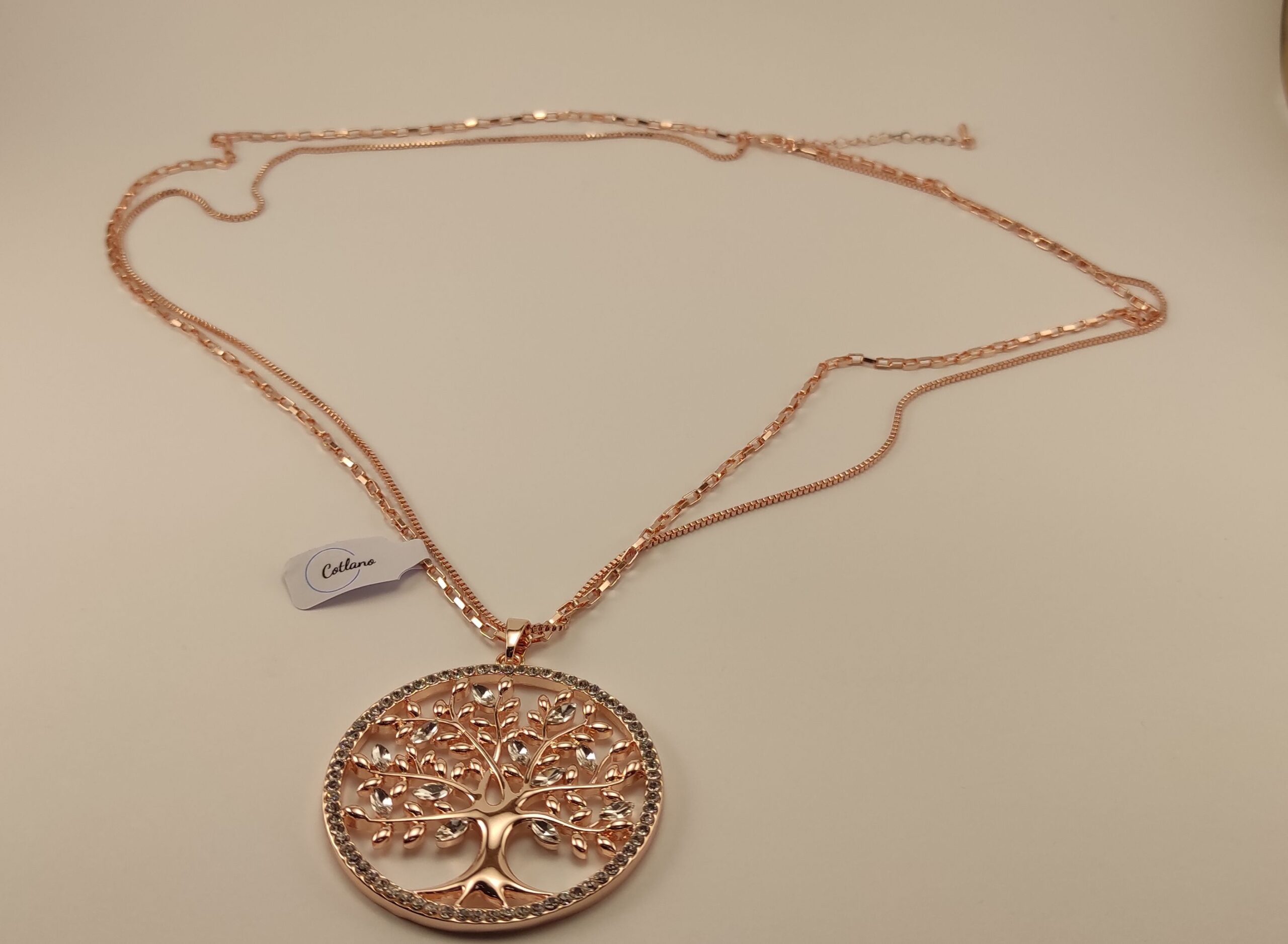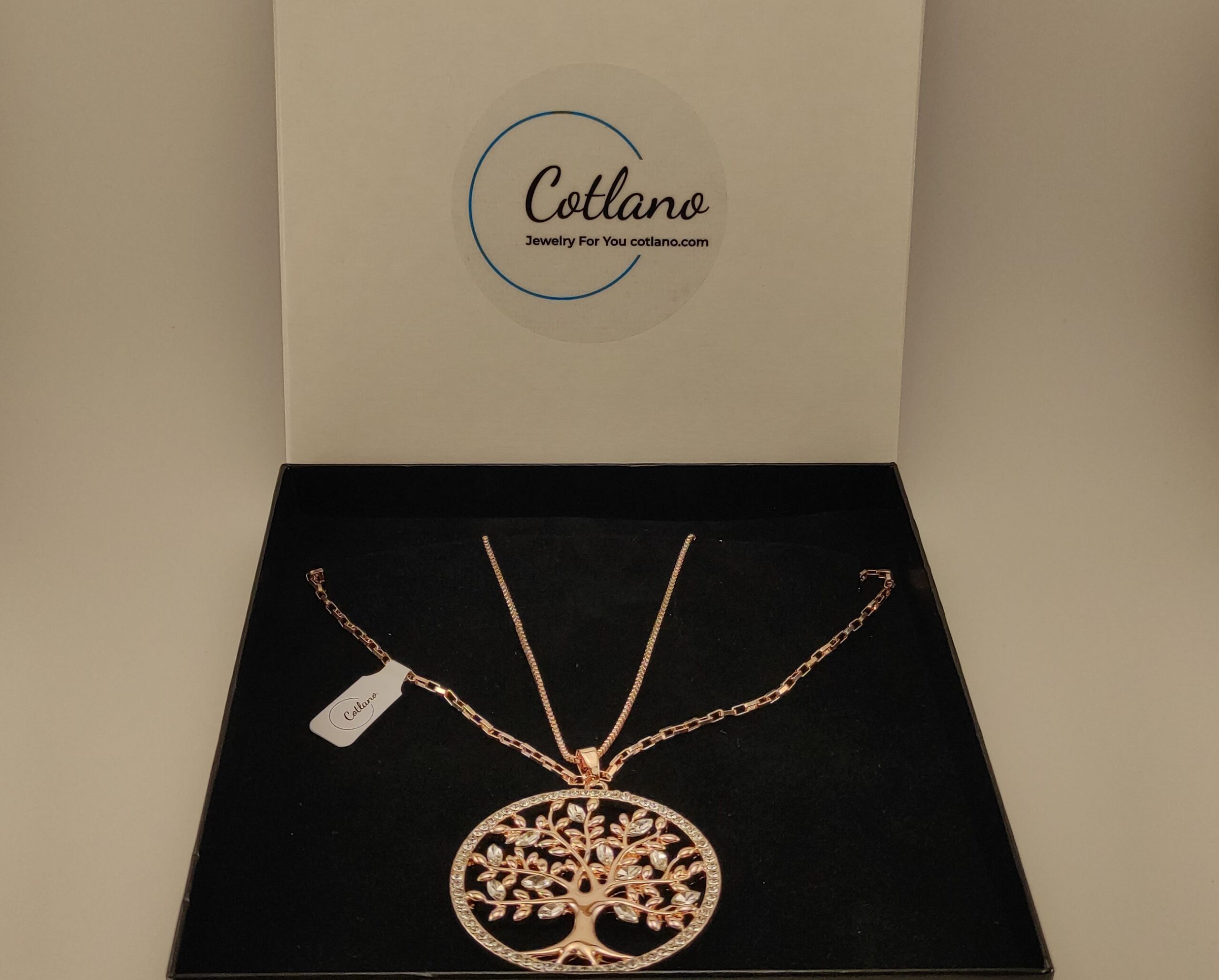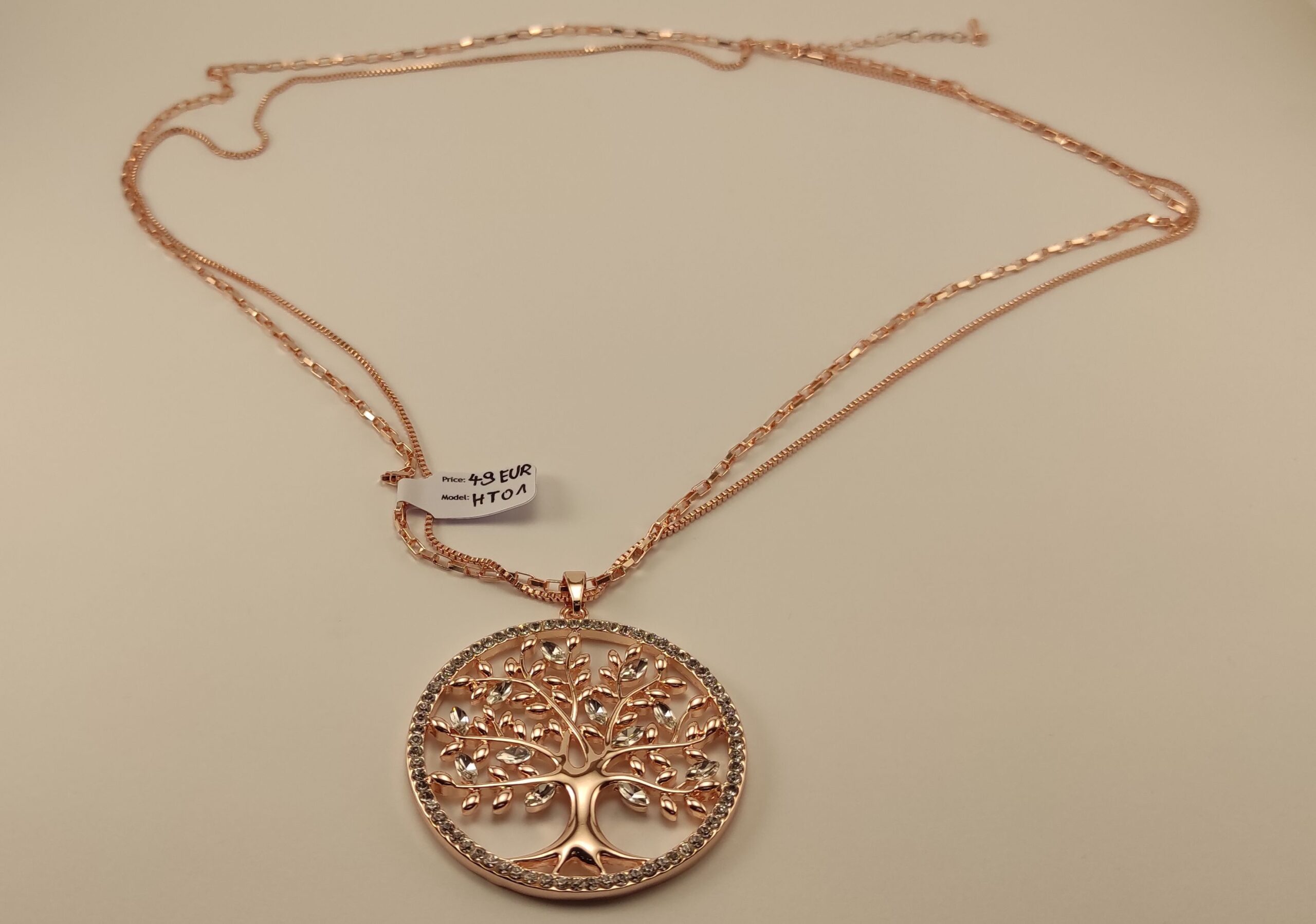 Tree Of Life Crystal Long Necklace HT01 model for women. Rose gold colour with tasteful high-quality rhinestones.